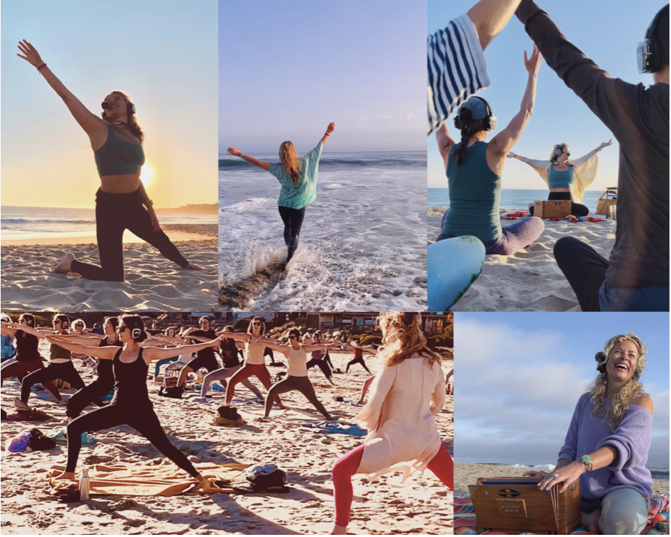 Experience Outdoor Yoga Santa Cruz ~ each student equipped with specialized headphones for a magical yoga + sound journey. Never miss a cue or beat!